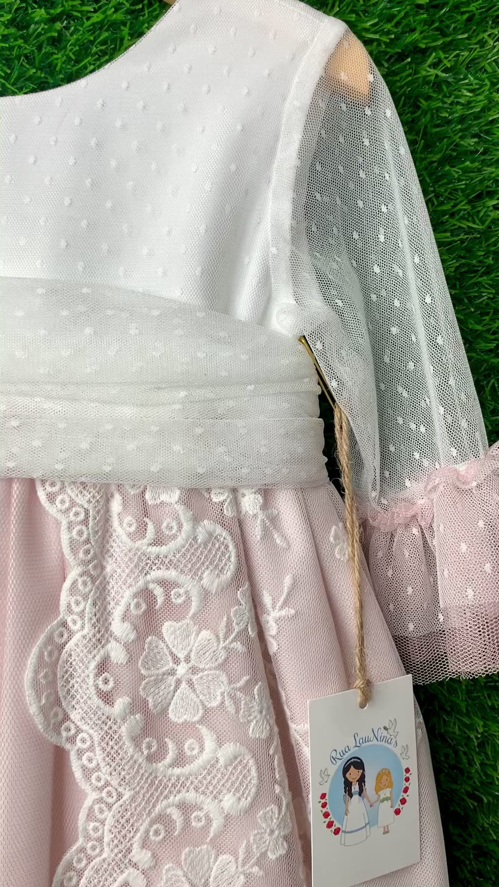 This charming dress is ideal for any kind of special occasion. Its elegant design and the lace and tulle details give it a classic and sophisticated style, perfect for making the girl who wears it shine.